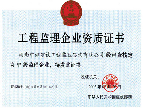 工程監理資質證書